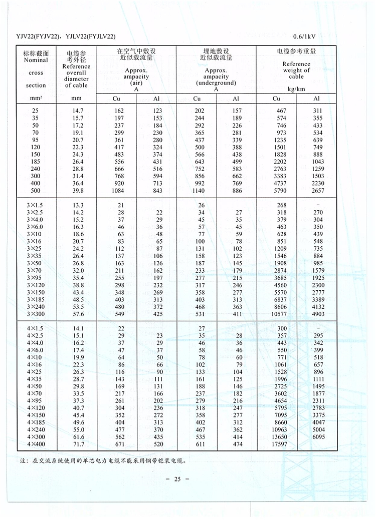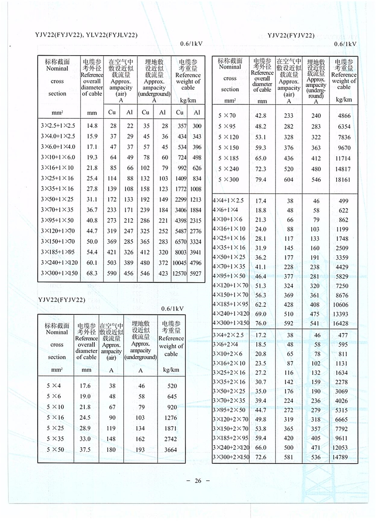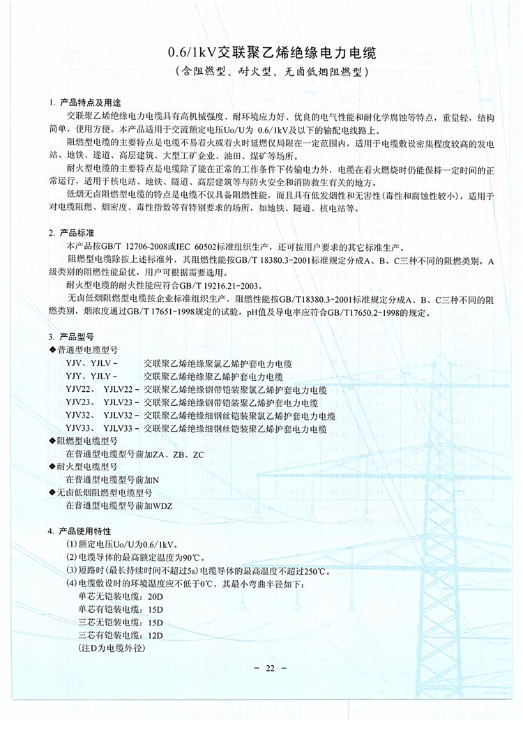詳細介紹:YJV22敷設在地下,能承受機械外力作用,但不能承受烯絕緣鋼帶鎧裝聚氯乙烯護套電力電纜 較大拉力。